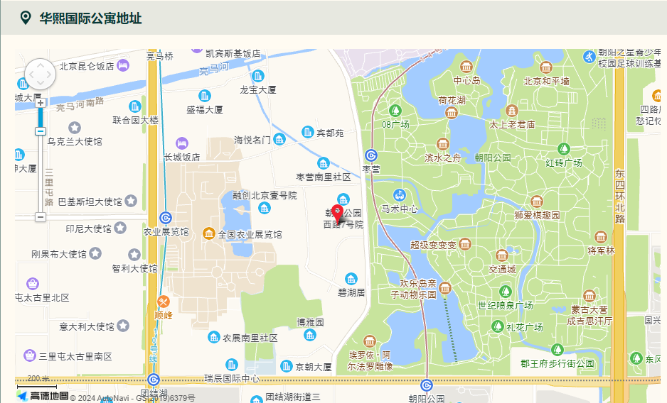 华熙皇石国际公寓位居CBD、燕莎、丽都三大国际涉外商圈腹地,与亚洲最大公园——朝阳公园一衣带水;公园周围已经形成京城高端居住区与休闲人文区,尽观其纯。公寓地理位置优越,多条线路通往东三,四环、地铁14号线、机场高速交通动脉,尽享其捷,华熙皇石国际公寓采用源自意大利洞石为主体的装饰风格,内设129套风格各异的套房,均配有进口高级品牌成套家具、西门子家用电器、一卡通安防系统等,可选择收视数十个国家和地区的电视节目。令阁下在流连景象的旖旎及奢华万象的品位之间,尽显王者之气。并为阁下提供70--400平方米多元化居住空间的选择,让居者成为空间之真正王者。华熙皇石国际公寓内设多功能健身房,专业教练指导,软硬件服务一流。华熙皇石国际公寓不定期为租客举办不同主题活动,例如烹饪课程,瑜伽课程,舞蹈课程,郊游活动,在重大节日还会有相关主题的庆祝活动。